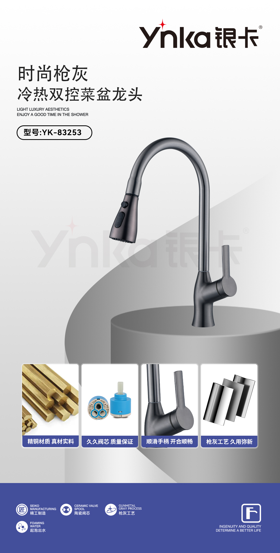 汉斯抽拉单孔(枪灰)YK-83270