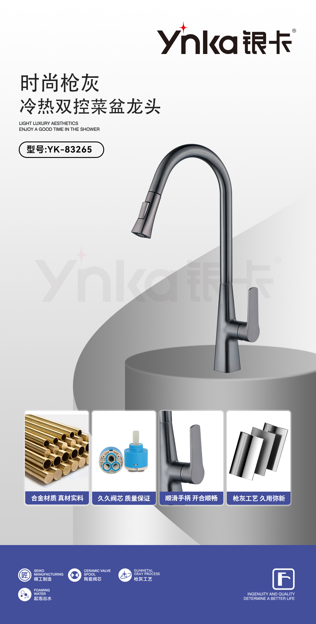汉斯抽拉单孔(枪灰)YK-83270