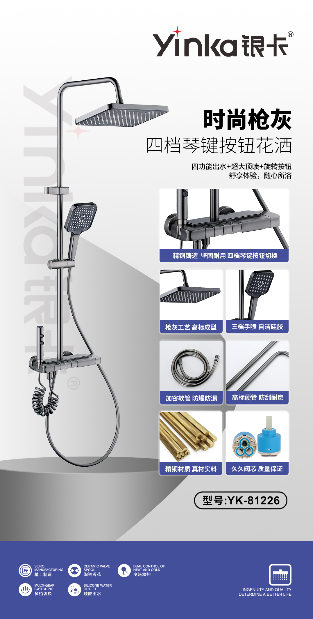 高端星环四档带灯花洒(枪灰)YK-81226