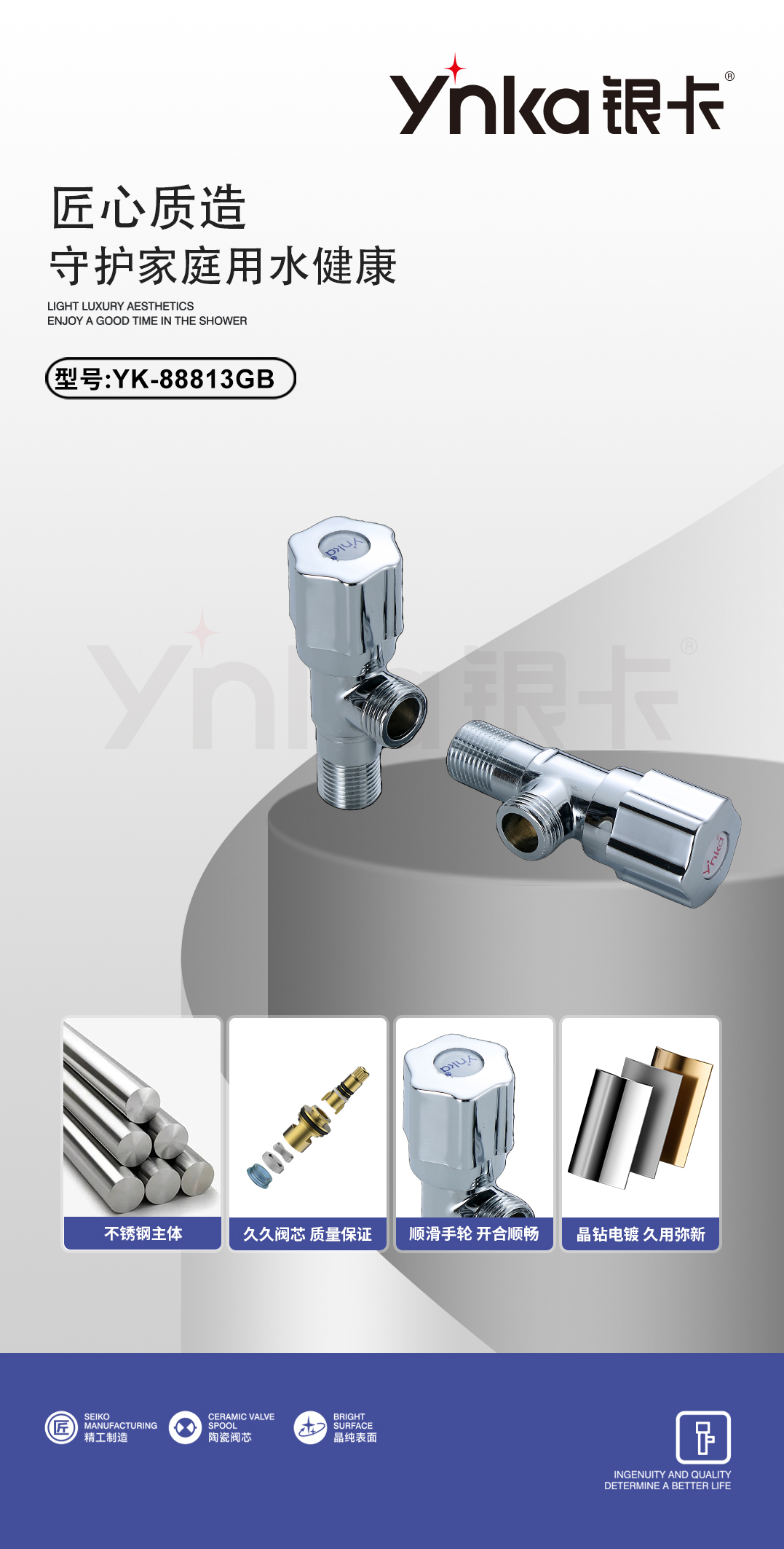 YK-88813GB高标不锈钢角阀(银卡轮)