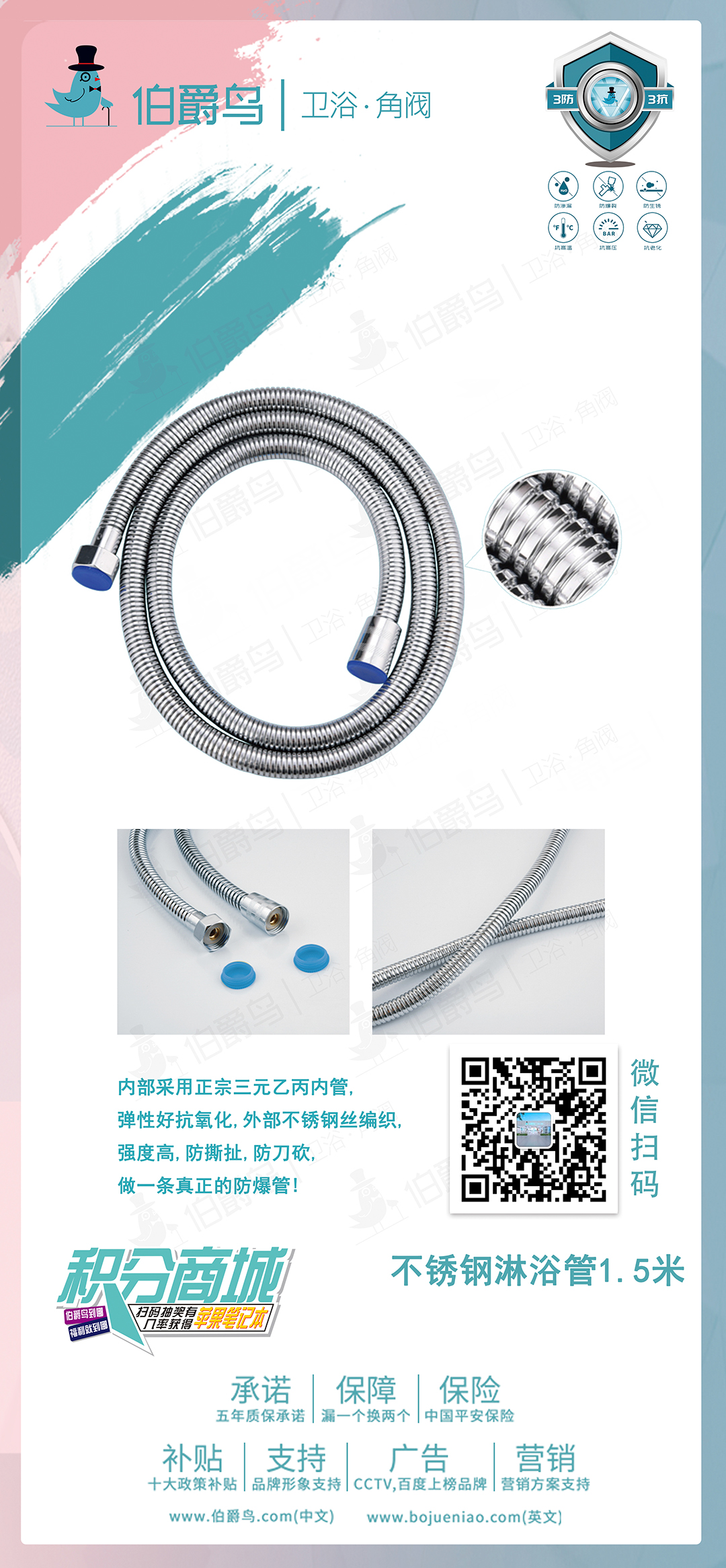 不锈钢淋浴管1.5米